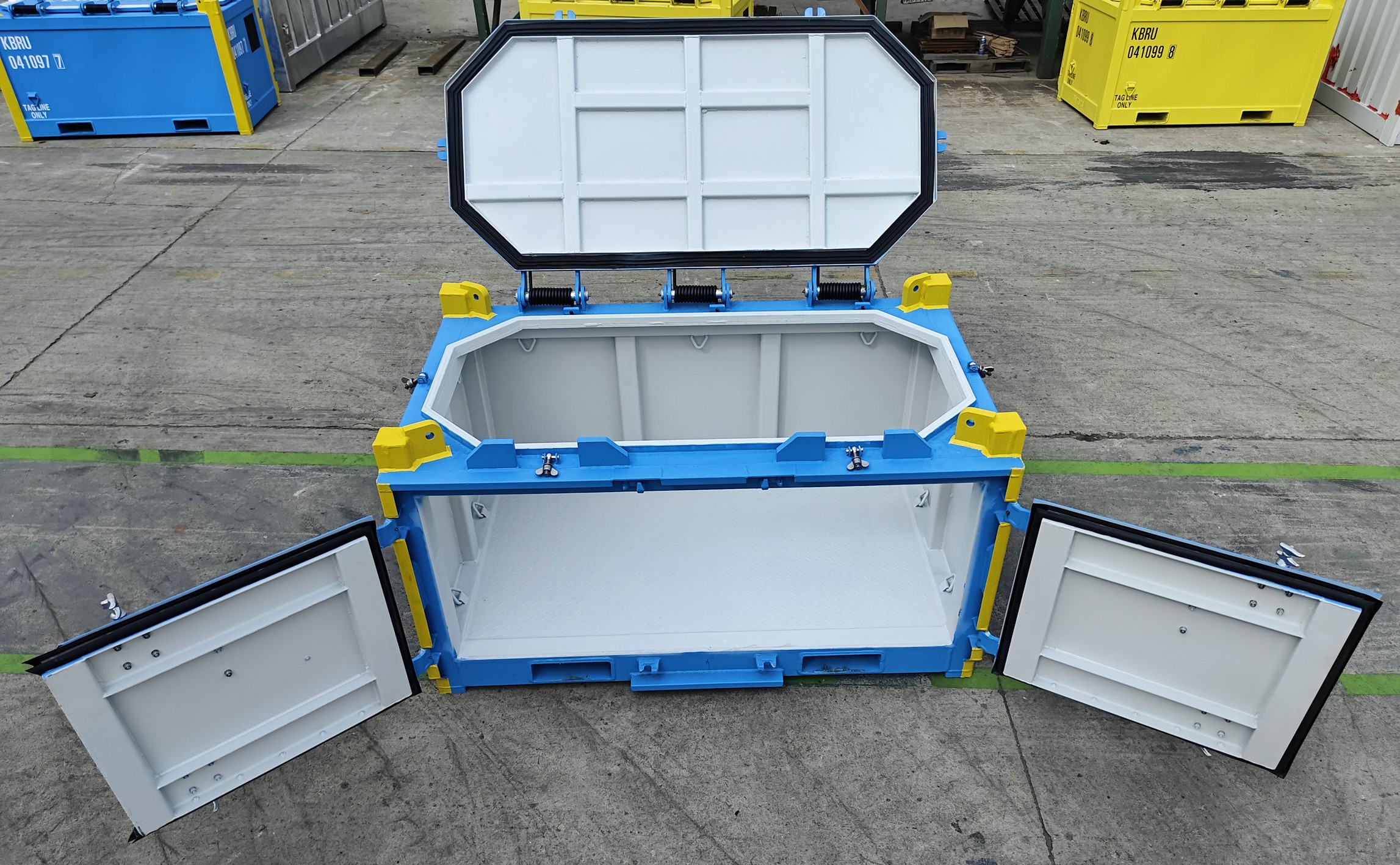 Le conteneur offshore certifié DNV est spécialement conçu pour les environnements maritimes et industriels exigeants. Contrairement à un conteneur maritime ISO standard, il est homologué pour le levage offshore et destiné au transport sécurisé de matériel entre la terre et les installations en mer (plateformes, navires, bases logistiques offshore). Sa conception répond aux normes DNV 2.7-1 / DNV-ST-E271, références internationales utilisées dans l’industrie offshore, pétrolière, énergétique et maritime.